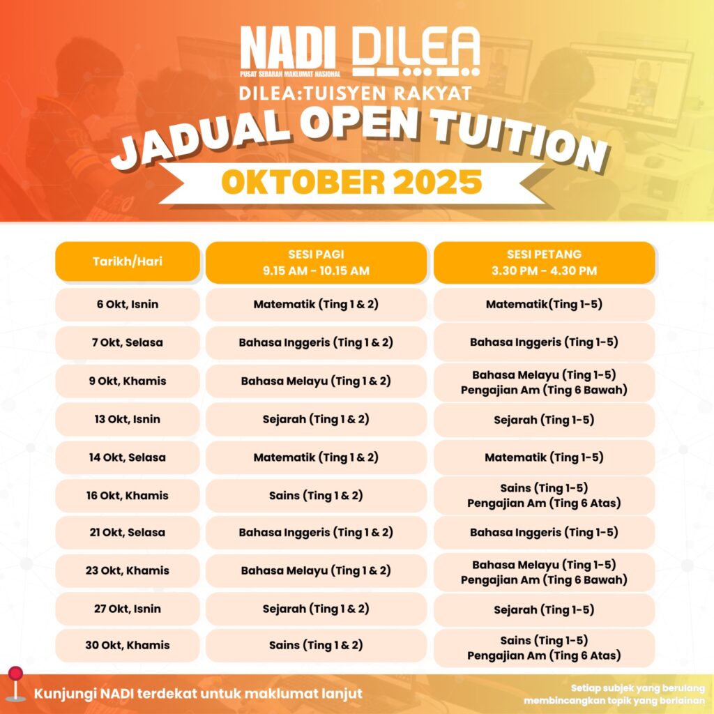 JADUAL OPEN TUITION OKTOBER 2025